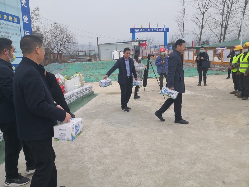 新年伊始,萬象更新,一館一中心項目正如火如荼建設(shè)中,寒風吹拂中,縣委縣政府為忙碌的工人們送來溫暖。1月3日,縣委書記李代斌一行放棄節(jié)假日休息時間到一館一中心項目地慰問戰(zhàn)斗在一線的工人,體現(xiàn)了黨和政府對每一位工人的關(guān)懷??h總工會為項目部送來一大批糧油食品,發(fā)放給施工現(xiàn)場的每一位工人。